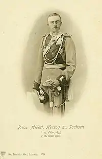 - Este artigo foi inicialmente traduzido, total ou parcialmente, do artigo da Wikipédia em inglês cujo título é «Prince Albert of Saxony (1875–1900)», especificamente desta versão.