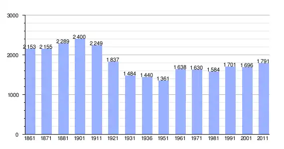 | Variação demográfica do município entre 1861 e 2011[3] |
