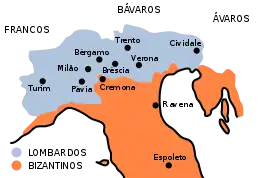 Após reunir um grande conglomerado de povos, Alboíno cruzou os Alpes Julianos em 568, entrando em território italiano sem encontrar praticamente nenhuma oposição. Rapidamente tomou controle da maior parte da Venécia e da Ligúria. [nt 1] Em 569, também sem enfrentar resistência, conquistou a principal cidade do norte da Itália, Milão. Pavia, no entanto, resistiu bravamente, e só foi conquistada após um sítio que durou três anos; durante este período Alboíno voltou suas atenções para a Toscana, porém indícios de divisões faccionais entre seus seguidores e uma redução gradual do controle sobre suas tropas começaram cada vez mais a se manifestar.