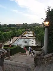 O alcázar centra-se no Patio Morisco ("Pátio Mourisco"), outro elemento popular. Os turistas também podem subir a duas torres: a Torre de los Leones ("Torre dos Leões") e a Torre de Homenaje ("Torre de Menagem"). A última possui características góticas, incluindo um tecto ogival.[1]