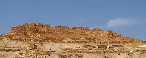 Os alcáceres cidadela, ou alcala (kalâa; fortaleza),[lower-alpha 1] têm uma clara vocação defensiva. São de difícil acesso e não é fácil identificá-los de longe, pois encontram-se alcandorados em relevos naturais com os quais se confundem devido à sua estrutura, formas e cores. As aldeias, com habitações e lagares de azeite trogloditas são escavadas na rocha das encostas. As inscrições mais antigas encontradas nas paredes das ghorfas remontam à época das invasões hilalianas mas pensa-se que algumas construções possam ser anteriores.