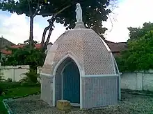 A construção que envolve a cacimba tem planta octogonal, recoberta por cúpula apontada. Em cima, no centro, situa-se uma estatueta que alguns habitantes locais chamam de "santinha" mas que na verdade representa a estação do inverno. As paredes são revestidas de azulejos, decorados com motivos geométricos. Quatro arcos ogivais dão acesso ao poço.