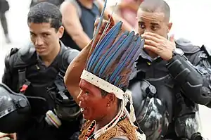 Em 22 de março de 2013, a Aldeia Maracanã foi finalmente ocupada por forças policiais que retiraram os indígenas. Na ocasião, houve protestos de diversos segmentos sociais e políticos, tais como o deputado estadual Marcelo Freixo, que saiu com os olhos lacrimejantes após o uso de gás lacrimogêneo e criticou duramente e ação policial.[25] Ainda na ocasião, uma ativista do grupo Femen foi detida após mostrar os seios, como forma de protesto.[26][27]