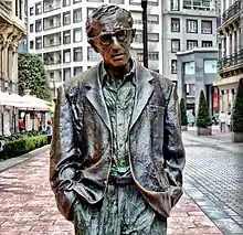- Erickson, Amanda (22 de janeiro de 2018). «'An abuser and pervert': Women in Spain want a statue of Woody Allen removed». The Washington PostGovan, Fiona (22 de janeiro de 2018). «Women demand Woody Allen statue removed in Oviedo after sex molestation allegations». The Local Spain«A man looks at a banner on sculpture of Woody Allen during the rally on the World Day for the Elimination of Violence against Women in Oviedo». Reuters. 25 de novembro de 2017