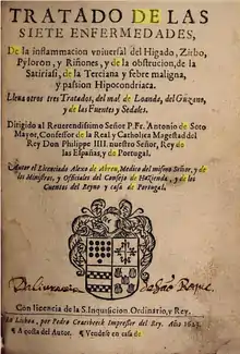 - «Tratado de las Siete Enfermedades: De la inflammacion vniuersal del Higado, Zirbo, Pyloron, y Riñones, y de la obstrucion, de la Satiriasi, de la Terciana y febre maligna, y passion Hipocondriaca: Lleua otros tres Tratados, del mal de Loanda, del Guzano, - Biblioteca Nacional Digital». purl.pt. Consultado em 22 de maio de 2022