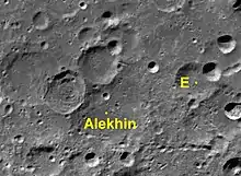 Por convenção essas formações são identificadas em mapas lunares por posicionamento da letra no local do ponto médio da cratera que é mais próximo de Alekhin.