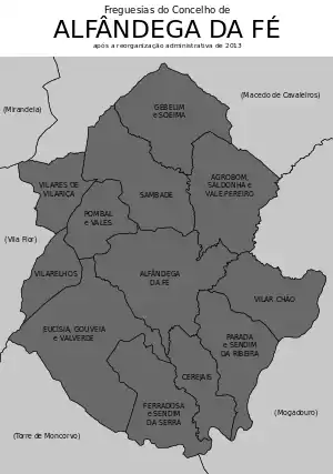 O município de Alfândega da Fé está dividido em 12 freguesias: