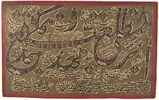 ![]() "Fârsi" escrito no alfabeto persa na caligrafia nastalique | |