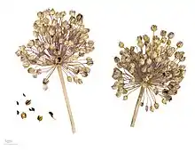 O alho-porro-bravo (Allium ampeloprasum) é a espécie que, segundo alguns botânicos, terá dado origem ao alho-porro (Allium porrum, ou Allium ampeloprasum porrum, se considerarmos este último apenas como uma variante do alho-porro-bravo). Aliás, o seu nome vulgar, alho-porro-bravo denota essa mesma interpretação. O bolbo é constituído por vários bolbilhos de pequenas dimensões. As flores estão dispostas numa umbela grande com uma espata caduca na base. Os estames aparecem com filetes laterais sem antera e o do meio, com antera e mais curto.