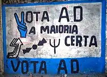 A Aliança Democrática (AD) foi uma coligação política em Portugal de centro-direita, formada pelo Partido Social Democrata (PPD/PSD), pelo CDS – Partido Popular (CDS–PP), pelo Partido Popular Monárquico (PPM) e personalidades independentes.[1][2] Teve como grande impulsionador o líder histórico do PSD, Francisco Sá Carneiro, bem como os líderes do CDS, Diogo Freitas do Amaral, e do PPM, Gonçalo Ribeiro Telles.