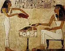 A cerveja era conhecida, junto com o pão, como um alimento básico. A bebida egípcia antiga era turva, com sólidos em suspensão, rica em carboidratos complexos e açúcares, que forneciam a energia alimentar e uma importante quantidade de ácidos graxos essenciais, aminoácidos, minerais e vitaminas. Ela sempre foi uma parte importante das oferendas aos mortos e aos Deuses, além de, talvez por causa de seu papel alimentar central, a cerveja ser um produto econômico importante.[4]