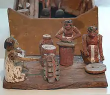 A arte de fazer cerveja era tipicamente dominada por mulheres, junto com todas as atividades de moagem. Esse caso não é somente egípcio, pois na Mesopotâmia havia uma deusa relacionada à cerveja: Ninkasi.