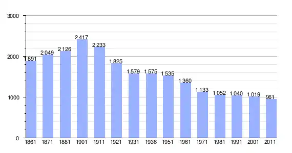 | Variação demográfica do município entre 1861 e 2011[3] |
