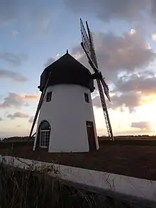 De acordo com a tradição, as habitações da freguesia são pintadas na cor branca com barras vermelho-escuras, alegadamente a recordar a cor do almagre. Entre o património edificado destacam-se: