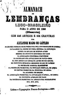 Alexandre Magno de Castilho, irmão de Feliciano de Castilho, fundou em 1851 o Almanaque de Lembranças, uma publicação anual destinada ao grande público. Logo no seu quinto número o almanaque utilizou pela primeira vez a designação de Almanaque de Lembranças Luso-Brasileiro', designação que viria a adoptar definitivamente a partir de 1872.[1] Com a morte do fundador, em 1861, a responsabilidade pela edição passou para um dos sobrinhos, também chamado Alexandre Magno de Castilho. Sucedeu-lhe, em 1872, um seu colaborador, António Xavier Rodrigues Coelho, tendo a revista ficado no âmbito da família até quase ao fim (o último número, que saiu em 1932, foi publicado Armando de Lima Pereira).[2] Com a sua popularidade, o volume do almanaque anual, que inicialmente rondava as cem páginas, foi aumentando e chegou, nalguns números, a ultrapassar as quinhentas.[2]