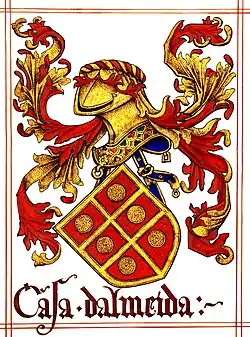O brasão de armas da família Almeida, aqui incluído, faz referência à riqueza (ouro) e ao poder (vermelho).