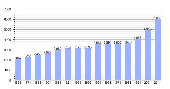 | Variação demográfica do município entre 1861 e 2011[3] |