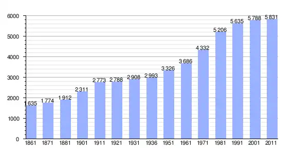 | Variação demográfica do município entre 1861 e 2011[3] |