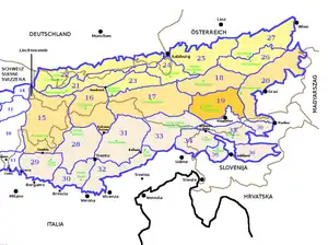- Secção alpina = Alpes da Estíria e da Caríntia