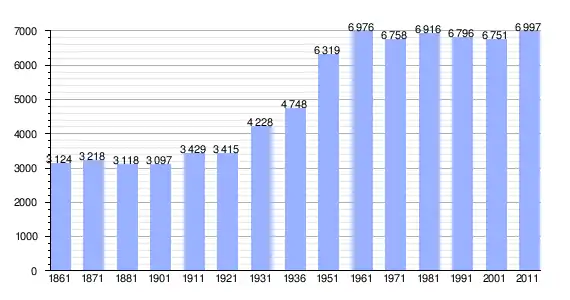 | Variação demográfica do município entre 1861 e 2011[3] |