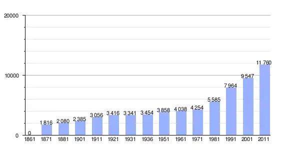 | Variação demográfica do município entre 1861 e 2011[3] |