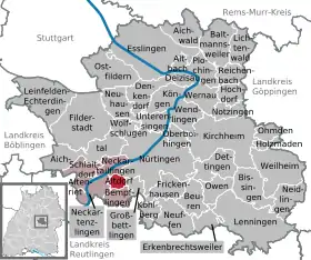 | Localização de Altdorf (Nürtingen) no distrito de Esslingen | |