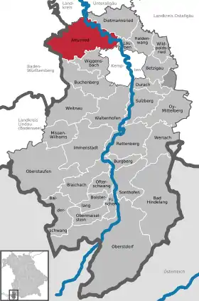 ![]() Altusried Mapa da Alemanha, posição de Altusried acentuada |