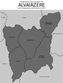Em 2013, devido à reforma administrativa nacional, foram extintas três das, até então, 7 freguesias do município alvaiazerense:[4]