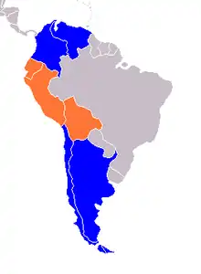 São eles: Bolívia, Peru, Equador, Colômbia, Chile e Venezuela. Em conjunto esses países ocupam aproximadamente 5,4 milhões de quilômetros quadrados.[1]