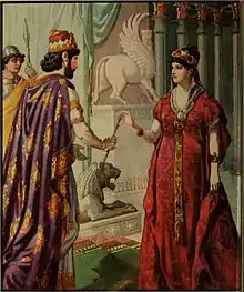 O livro bíblico de Ester é um romance histórico, que narra o destino da diáspora judaica no século V a.C. sob Assuero (ou seja, Xerxes I). A trama do romance se passa na corte aquemênida em Susã. A rainha Vasti, esposa de Xerxes, recusa-se a comparecer a uma recepção dada por seu marido perante seus convidados e, como resultado, é privada de sua posição como rainha, e substituída pela judia Ester.[19]