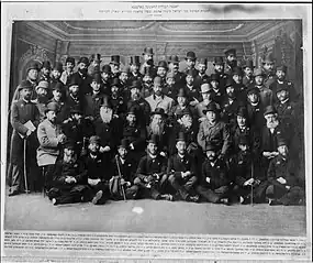 Participantes da Conferência de Katowice, 1884. No centro da primeira fila Rabino Samuel Mohilever e Leon Pinsker