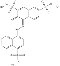 | Nome IUPAC | trisodium (4E)-3-oxo-4-[(4- sulfonato-1- naphthyl)hydrazono]naphthalene- 2,7-disulfonate |