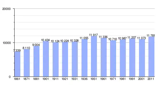 | Variação demográfica do município entre 1861 e 2011[3] |
