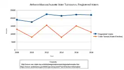 - «Profile of General Population and Housing Characteristics: 2010 Census Summary File 1 (DP-1): Amherst town, Hampshire County, Massachusetts». American Factfinder. U.S. Census Bureau. Consultado em 7 de agosto de 2017. Cópia arquivada em 13 de fevereiro de 2020