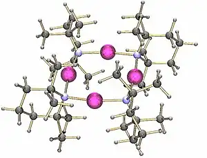 - M.F. Lappert, M.J. Slade, A. Singh, J.L. Atwood, R.D. Rogers and R. Shakir (1983). «Structure and reactivity of sterically hindered lithium amides and their diethyl etherates: crystal and molecular structures of [Li{N(SiMe3)2}(OEt2)]2 and tetrakis(2,2,6,6-tetramethylpiperidinatolithium)». Journal of the American Chemical Society. 105 (2): 302–304. doi:10.1021/ja00340a031