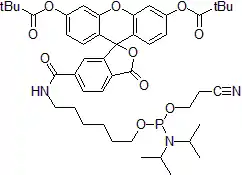 Amidita de fluoresceína, abreviada como FAM (de fluorescein amidite, comercialmente disponível na versão 6-FAM[1], a qual é mostrada na figura), é um equivalente sintético importante do corante fluoresceína usado em síntese de oligonucleotídeos e biologia molecular.[2][3][4]