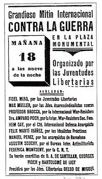 Após a vitória da Frente Popular em fevereiro de 1936, um grupo de pacifistas criou a Liga Hispânica contra a Guerra, como a seção espanhola do WRI (War Resisters' International, International de Resistentes à Guerra). Era composto por Amparo Poch como presidente, Fernando Oca del valle como secretário, e o professor José Brocca como Delegado ao Conselho do WRI. Outros representantes foram Juan Grediaga, Mariano Solá e David Alonso Fresno.[1][5]