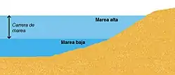 A amplitude da maré é a diferença entre o nível da água na maré alta e na maré baixa subsequente.
