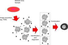 Análise de partícula única é um grupo de técnicas de processamento de imagem relacionadas usadas para analisar imagens de microscópio eletrônico de transmissão (MET).[1] Estes métodos foram desenvolvidos para melhorar e estender a informação obtível de imagens de METs de amostras particuladas, tipicamente proteínas ou outras entidades ciológicas grandes tais como vírus Imagens individuais de partículas coloridas ou não coloridas (que passaram ou não por um processo de coloração para absorção de elétrons) causam muito ruído de sinal, e são difíceis de serem interpretadas. Combinando várias imagens digitalizadas de partículas similares em conjunto fornece uma imagem com características mais marcantes e com mais facilidade de serem interpretáveis. Uma extensão desta técnica utiliza métodos de partícula única para construir uma reconstrução tridimensional da partícula. Usando-se criomicroscopia eletrônica agora é possível gerar reconstruções com resolução sub-nanométrica e próxima da escala atômica [2] no caso de vírus altamente simétricos.