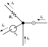 A tensão desconhecida nesse circuito é V1. Existem três conexões para este nó e, consequentemente, três correntes a se considerar. A direção das correntes em cálculos é escolhido para ser afastado do nó.