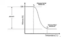 As Figuras 1 e 2 apresentam curvas típicas teóricas da decomposição térmica de um material, tanto a TGA como a DTG. Ti representa a menor temperatura em que pode ser detectado o início da variação de massa para um determinado conjunto de condições experimentais e Tƒ é a menor temperatura que indica que o processo responsável pela variação de massa foi concluído.
