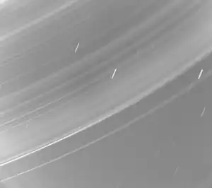 - Porco, Carolyn, C. (1987). Goldreich, Peter. «Shepherding of the Uranian rings I : Kinematics». The Astronomical Journal. 93: 724–778. doi:10.1086/114354