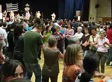 Esta dança usualmente possui canções associadas a ela, geralmente os versos são cantados em coro ou num estilo responsivo (líder canta seguido de resposta dos restantes dançarinos). Por vezes, os músicos tocam no meio da pista de dança e então os dançarinos podem formar uma espiral à sua volta.