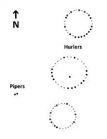 The Hurlers: three stone circles with paired outlying stones (d) |