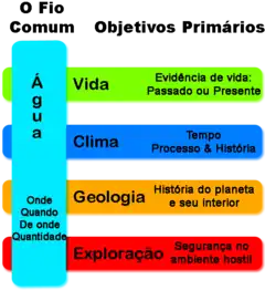Quando se propôs à exploração de Marte, a NASA viu a possibilidade que há bilhões de anos poderia ter corrido água em forma líquida sobre a superfície do planeta. Partindo de estudos de meteoritos marcianos que caíram na Terra e do pressuposto de que água é essencial para que a vida como a ciência concebe seja possível, o Mars Exploration Program estabeleceu que o estudo da água em Marte é crucial para entender seu papel no tempo e no clima,[11] na possibilidade de vida presente ou pregressa,[12] e para sua utilidade como recurso para futuras explorações humanas.[13][14]