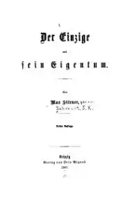 As primeiras influências filosóficas foram as de Hegel e Proudhon, na década de 1840. Nestes anos, Stirner publicou a sua obra Der Einzige und sein Eigentum (O único e a sua propriedade), obra crucial que daria origem à corrente individualista intitulada anarquismo egoísta. Os ideais de Stirner não tiveram repercussão e limitaram-se aos círculos intelectuais alemães; esta sua obra seria mais tarde resgatada depois de décadas por John Henry Mackay.[2]