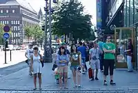 Em contraste, o tráfego de pedestres é oficialmente encorajado em algumas partes da União Europeia e a construção ou separação de rotas de passeio dedicadas recebem uma alta prioridade na maioria dos grandes centros urbanos europeus, frequentemente em associação com melhorias no transporte público. Em Copenhague, a maior área de compras para pedestres no mundo, a Strøget, tem se desenvolvido ao longo dos últimos 40 anos graças principalmente ao trabalho do arquiteto dinamarquês Jan Gehl.