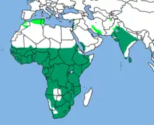 Distribui-se principalmente pelo continente africano e também pelo sul da Ásia. As zonas de nidificação mais próximas de Portugal situam-se em Marrocos.