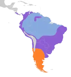 - P. c. cyanoleuca, que ocorre de Nicarágua até Paraguai, Uruguai e o noroeste da Argentina.