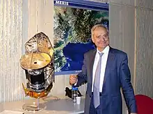 André Brahic no auditório do Centre spatial de Cannes Mandelieu, de Thales Alenia Space, durante a apresentação dos primeiros resultados das missões Herschel e Planck, 7 de outubro de 2009.